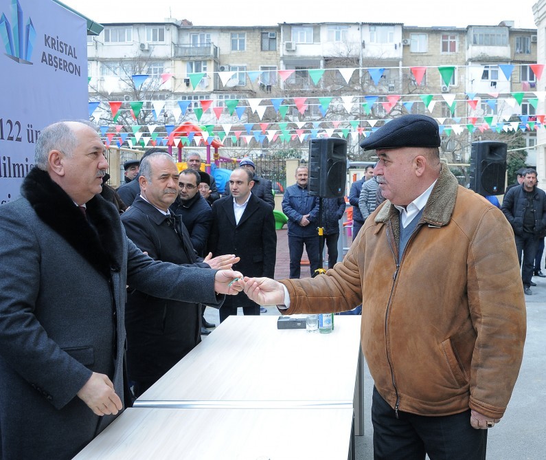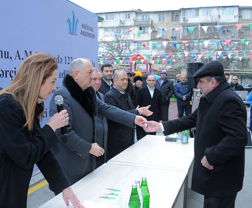 Sonra yeni binanın sakinlərinə mənzillərin açarları təqdim olunub.