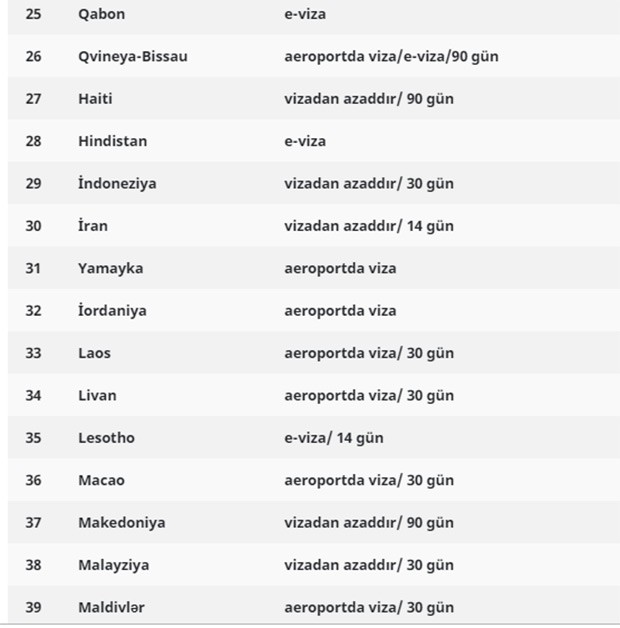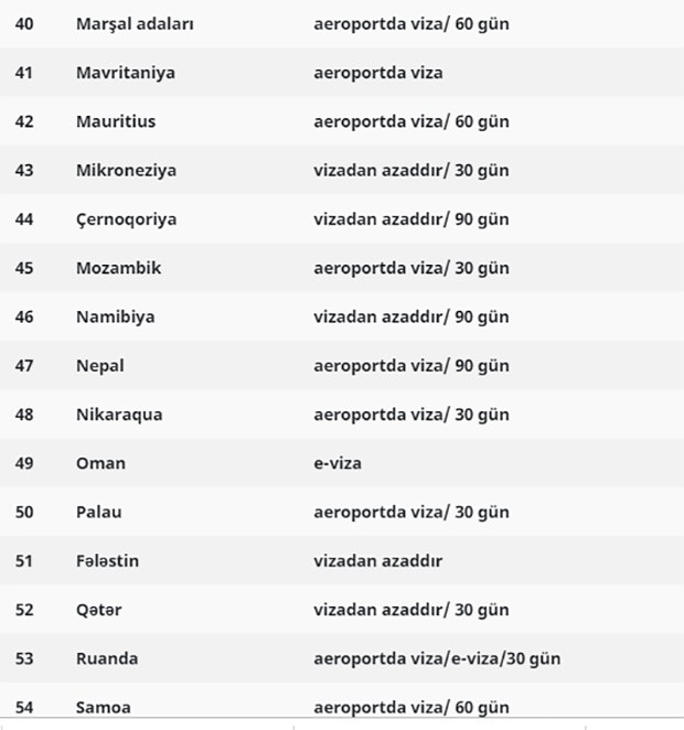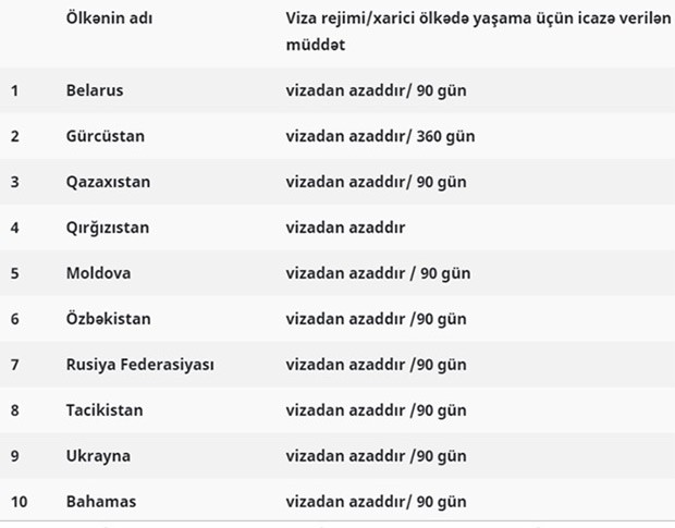 Başqa sözlə, “xarici pasport”u olanlar da bu ölkələrə vizasız gedə bilərlər: