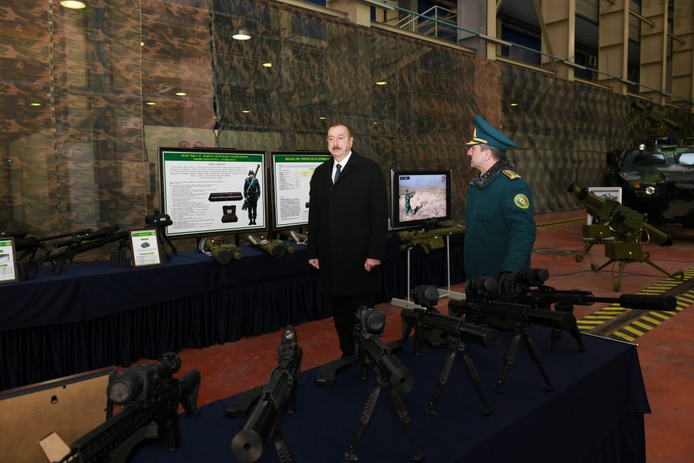 Sonra Prezident İlham Əliyevə yeni xüsusi təyinatlı döyüş texnikası və silah-sursat, pilotsuz uçan aparatlar, tank əleyhinə idarə olunan raketlər, lazer hədəf tuşlama sistemləri, termal müşahidə cihazları təqdim olundu. Bu döyüş texnikası və silah-sursat dünyanın ən aparıcı ölkələrinin məhsullarıdır.