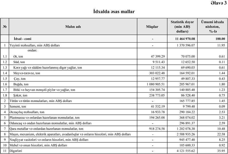 “Marja” Dövlət Gömrük Komitəsinin aylıq hesabatına istinadən xəbər verir ki, idxal əməliyyatları üzrə 11 milyard 464 milyon 970 min dollarlıq, ixrac əməliyyatları üzrə 19 milyard 458 milyon 632 min dollarlıq ticarət qeydə alınıb. Nəticədə, illik 7 milyard 993 milyon 662 min manatlıq müsbət saldo yaranıb.