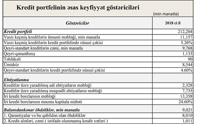 “NBC Bank”da depozitlər isə 43,9% artaraq 2017-ci ilin sonundakı 73 milyon 969 min manatdan 2018-ci ilin sonunda 106 milyon 426 min manata yüksəlib.