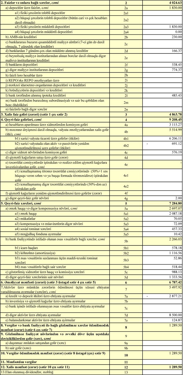 İllik müqayisədə Bankın depozit portfeli 18% azalaraq 70 milyon 461 min manat təşkil edib.
