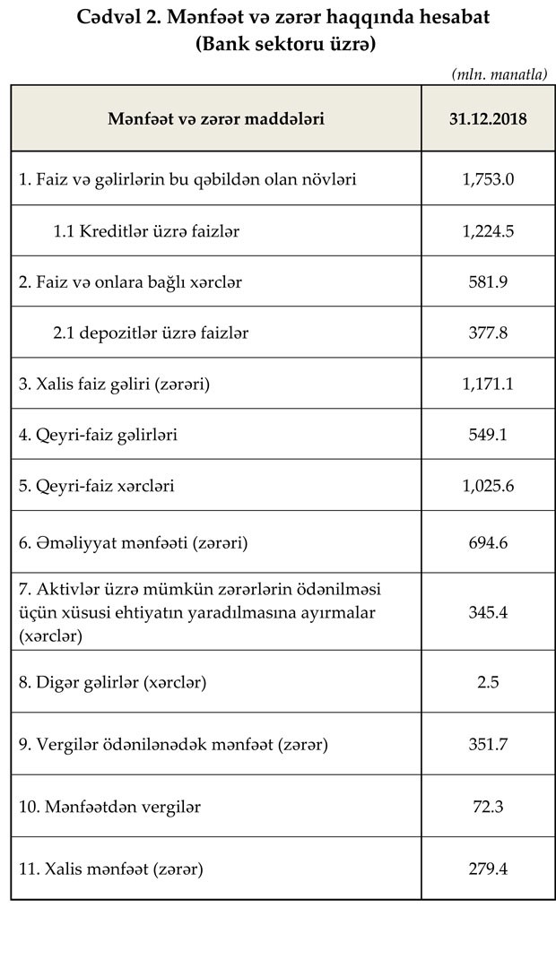 2018-ci ili bank sektoru mənfəətlə başa vurub.