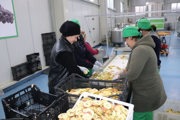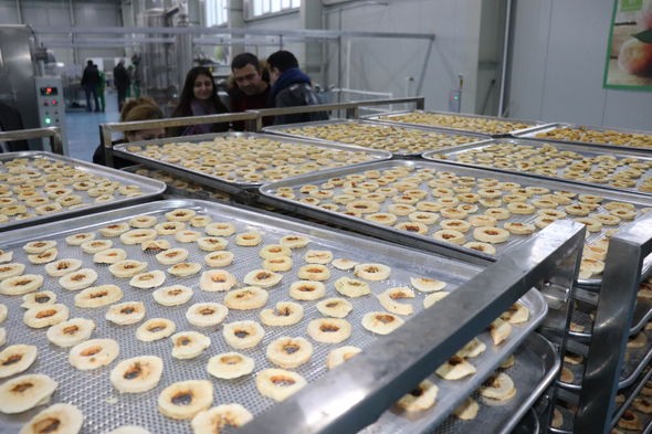 “Gördüyünüz bu zavodda təmiz, yerli kənd təsərrüfatı məhsullarından dünya bazarına hazır meyvə quruları və çipsi hazırlanır. İstifadə etdiyimiz avadanlıqlar Çin istehsalıdır.