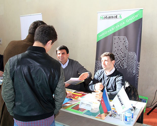 Tələbə və məzunlar Azərbaycanın əmək bazarında yüksək səviyyəli iş şəraiti və adekvat əmək haqları təklif edən biznes strukturu kimi tanınan “Mətanət A” ailəsinə üzv olmanın üstünlükləri ilə tanış olub, iş təklifləri ilə yaxından maraqlanıblar. Şirkətin mütəxəssisləri sərgi iştirakçılarına vakansiyalarla bağlı ətraflı məlumat veriblər. “Mətanət A” şirkətində işləmək arzusunda olan gənclər elə sərginin gedişi sırasında işə qəbulla bağlı doldurduqları anket və CV-lərini “Mətanət A” şirkətinin İnsan Resursları Departamentinin nümayəndələrinə təqdim ediblər.