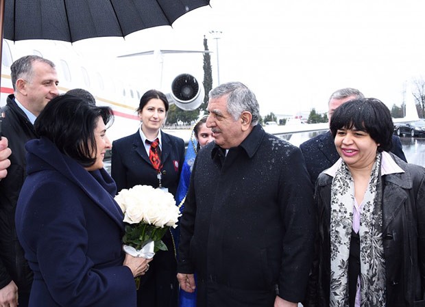Gürcüstan Prezidentini Zaqatala Beynəlxalq Hava Limanında Azərbaycanın Xarici İşlər Nazirliyinin xüsusi tapşırıqlar üzrə səfiri Azər Hüseyn, ölkəmizin Gürcüstandakı səfiri Dursun Həsənov, Zaqatala Rayon İcra Hakimiyyətinin başçısı Mübariz Əhmədzadə və digər rəsmi şəxslər qarşılayıblar.