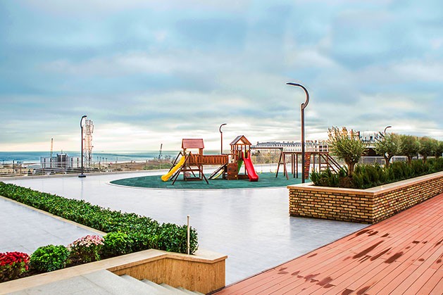 Ümumilikdə 20 000 m2 ərazini əhatə edən kompleksin 2 yeraltı mərtəbəsində 97 maşının dayanması üçün nəzərdə tutulan geniş parkinq sahəsi yerləşir. Binanın 1-ci mərtəbəsində reseption xidməti ilə təmin olunmuş 186 m2-lik geniş vestibül məkanın ümumi gözəlliyinə rəng qatır. 3-cü mərtəbədə yerləşən 2 000 m2-lik açıq park sahəsi isə binada yaşayan sakinlərin rahat istirahəti üçün nəzərdə tutulub. Burada uşaqlar üçün atraksion, oyun meydançası və şahmat sahəsi yerləşdirilib.