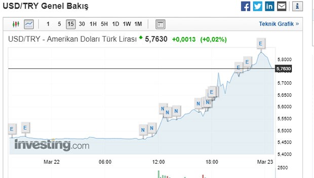 Dollar/TL (Türk Lirəsi) məzənnəsi 7% yüksələrək 5.8460-a qədər qalxıb.