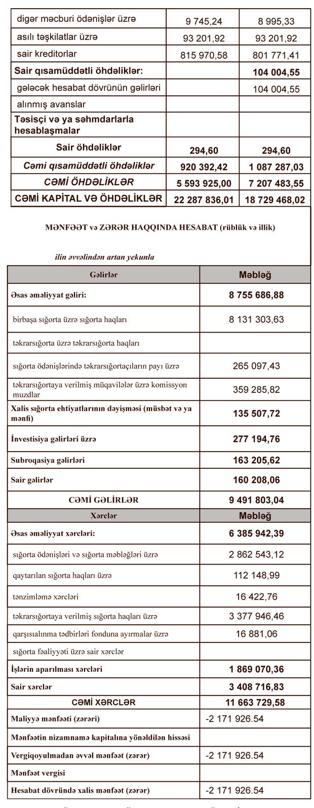 “Azərbaycan Sənaye Sığorta” şirkətinin 2018-ci ildəki 2 milyon 172 min manat zərəri 2015 və əvvəlki illər yaranmış ümidsiz borcların silinməsi ilə əlaqədardır.