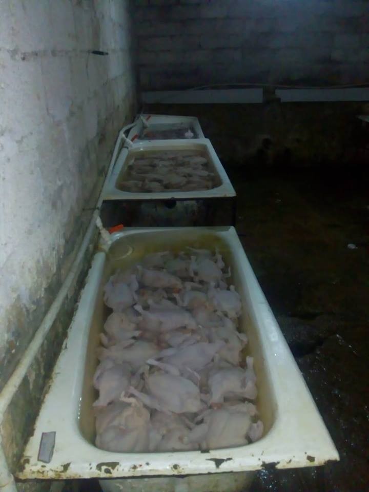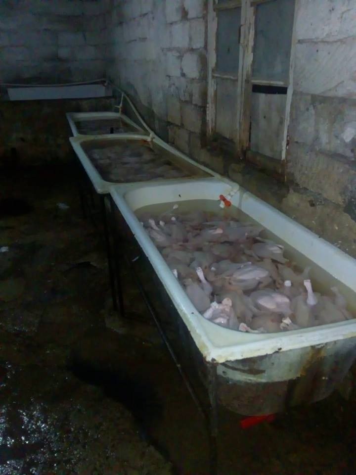 500 ədəd soyudulmuş toyuq cəmdəyi aşkar olunan qanunsuz emal sahəsində heç bir texniki-normativ tələblərə əməl edilmədən kustar üsulla toyuqların kəsildiyi, daha sonra antisanitar şəraitdə tükdən təmizləndiyi və uzun müddət su il doldurulmuş natəmiz vannalarına saatlarla saxlanıldığı müəyyən olunub. Eyni zamanda qanunsuz emal sexinin donuz yetişdirmə sahəsi ilə eyni ərazidə olduğu aşkar olunub.