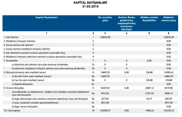 Müqayisə üçün qeyd edək ki, 2018-ci ilin yanvar-mart dövründə “AtaBank”ın cəmi gəlirləri 12 milyon 996 min manat, cəmi xərcləri 12 milyon 163 min manat, əməliyyat mənfəəti 834 min manat təşkil etmişdi. Həmin vaxt əməliyyat mənfəətinin 493 min manatı aktivlər üzrə mümkün zərərlərin ödənilməsi üçün xüsusi ehtiyatın yaradılmasına ayrılmış, "AtaBank" ASC 2018-ci ilin 1-ci rübünü 341 min manat xalis mənfəət ilə başa vurmuşdu.