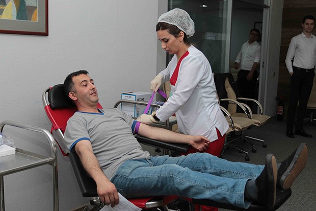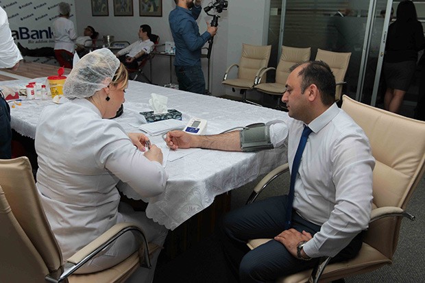 Bankın Azadlıq pr. 124 ünvanında yerləşən ofisində Mərkəzi Qan Bankının peşəkar tibb kollektivi donorların sağlamlıq vəziyyətini yoxlayaraq qangötürmə əməliyyatını həyata keçiriblər.