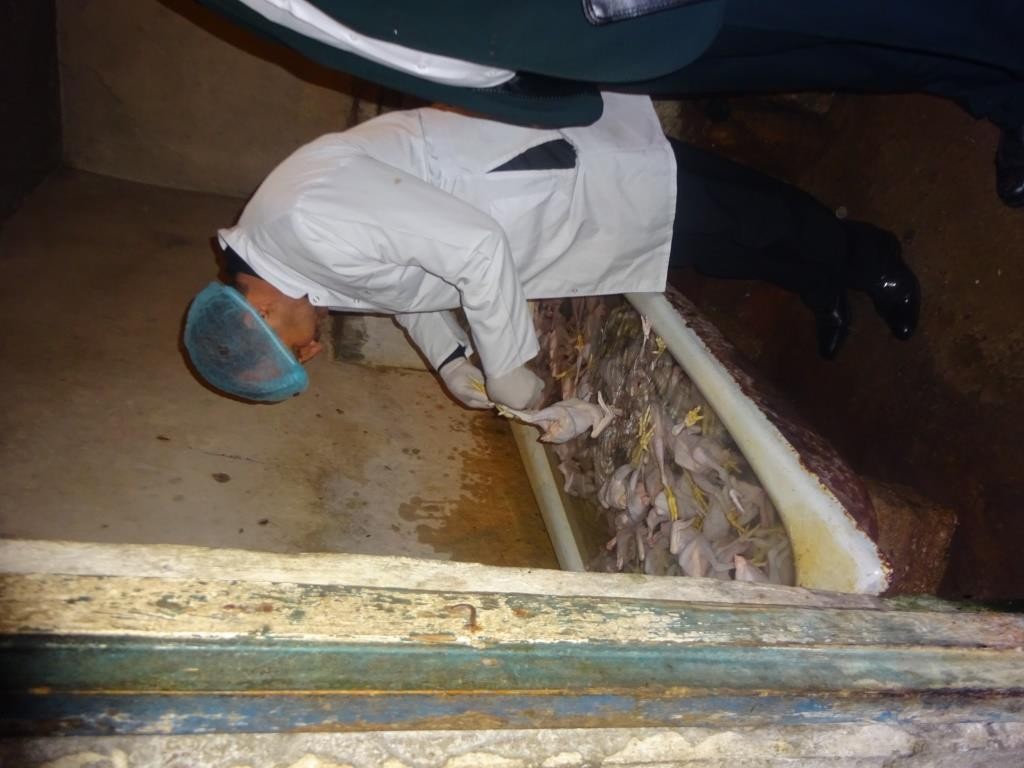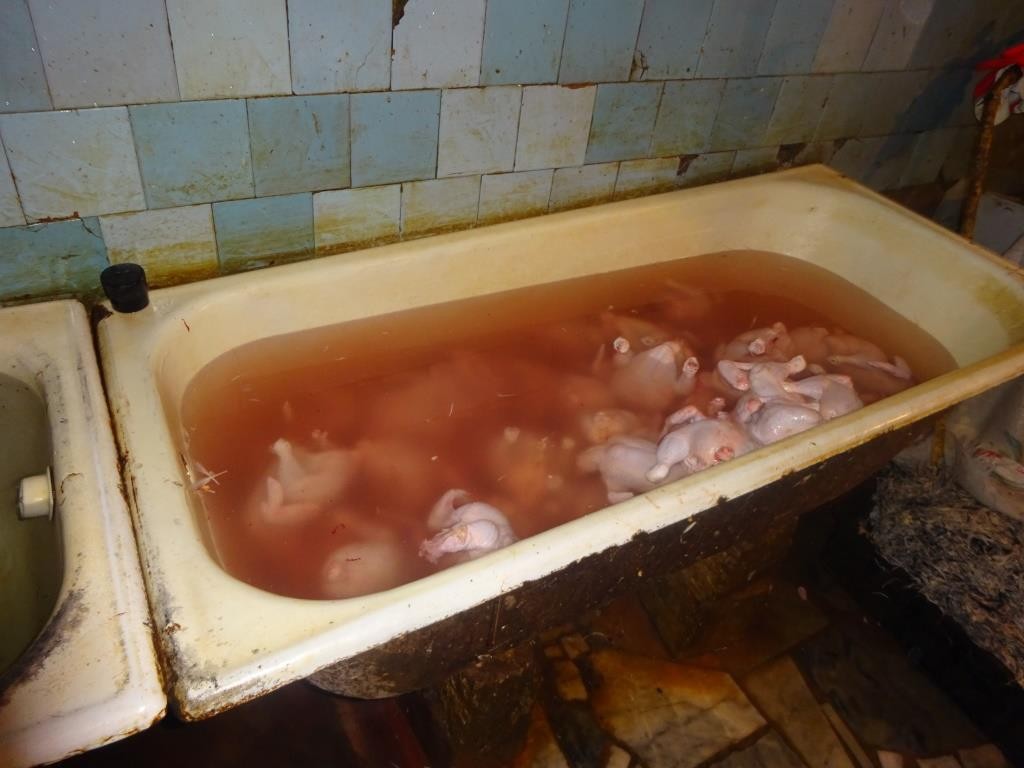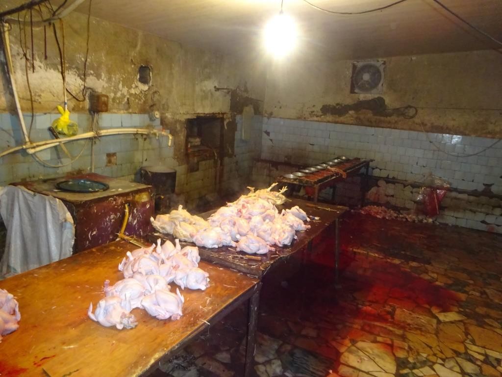 Belə ki, qanunsuz emal sahəsində heç bir texniki-normativ tələblərə əməl edilmədən kustar üsulla toyuqların kəsildiyi, daha sonra anti-sanitar şəraitdə tükdən təmizləndiyi və uzun müddət su il doldurulmuş natəmiz vannalarda saatlarla saxlanıldığı aşkarlanıb. Həmçinin baxış zamanı sexdə kəsilən toyuqların qanı və iç orqanlarının anti-sanitar şəraitdə sexin döşəməsinə yığılaraq oradan kanalizasiya xəttinə axıdıldığı məlum olub.