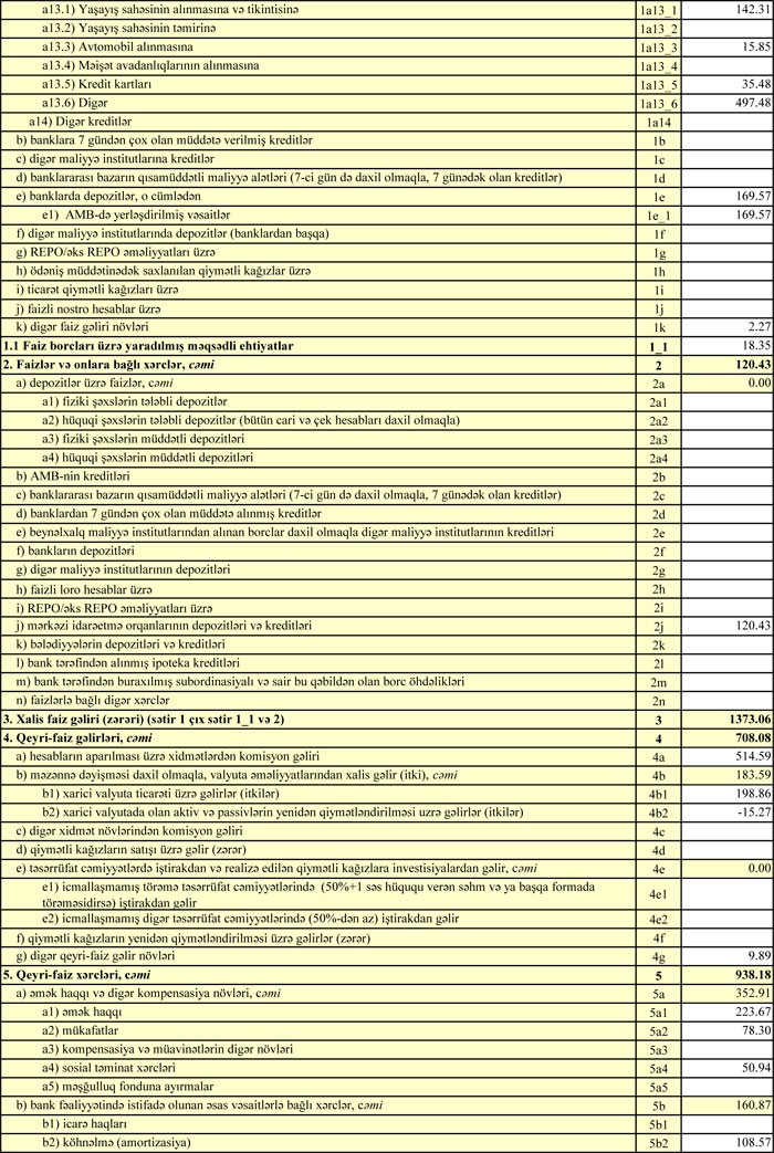 Ötən ilin yanvar-mart dövründə Bankın cəmi gəlirləri 2 milyon 61 min manat, əməliyyat mənfəəti 1 milyon 201 min manat təşkil etmişdi. Əməliyyat mənfəətinin 348.62 min manatı aktivlər üzrə mümkün zərərlərin ödənilməsi üçün xüsusi ehtiyatın yaradılmasına ayırılmışdı.