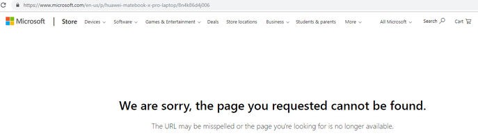 Microsoft-un mağazasında Huawei-nin məhsullarını axtaran istifadəçilər bu xəbərdarlıq mesajı ilə qarşılaşırlar: "Təəssüf ki, istədiyiniz səhifə tapılmadı".