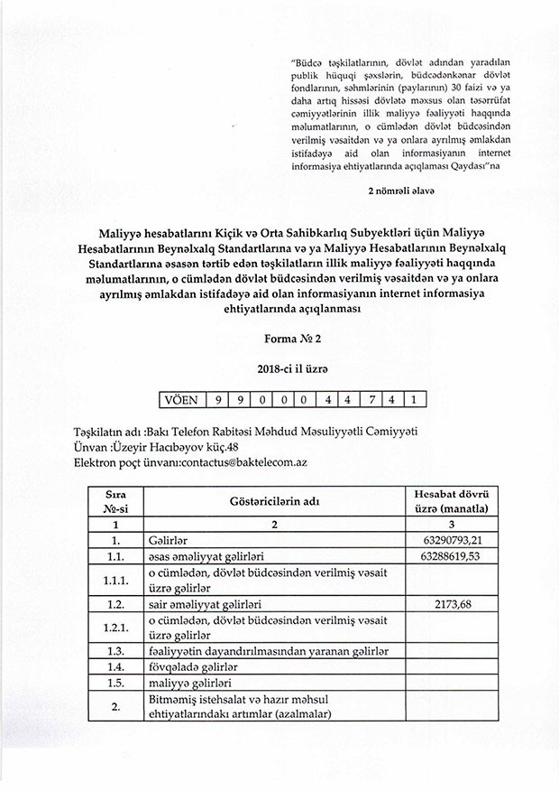 “Bakı Telefon Rabitəsi” MMC 2018-ci ili 6 milyon 217 min manat xalis mənfəət ilə başa vurub.