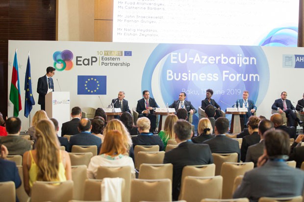 Qeyd edək ki, iyunun 13-də keçirilmiş Avropa İttifaqı-Azərbaycan Biznes Forumu Avropa İttifaqının Azərbaycandakı nümayəndəliyinin Alman-Azərbaycan Xarici Ticarət Palatası (AHK Azərbaycan) və Azərbaycanda İxracın və İnvestisiyaların Təşviqi Fondu (AZPROMO) ilə birgə əməkdaşlığı çərçivəsində təşkil olunub.