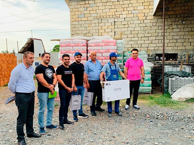 (®) Qazax Sement Zavodu MMC-nin Rəhbərliyi şirkətin satış və marketinq əməkdaşları ilə birgə bayram ərəfəsində Azərbaycan Respublikasının Qazax, Ağstafa, Tovuz, Şəmkir, Gəncə, İsmayıllı, Ağsu, Göyçay, Ağdaş, Qəbələ, Şəki, Qax, Oğuz, Zaqatala, Balakən rayonları və ucqar kəndlərində Akkord Sement məhsullarının satışını həyata keçirən inşaat materialları mağazalarında olub.