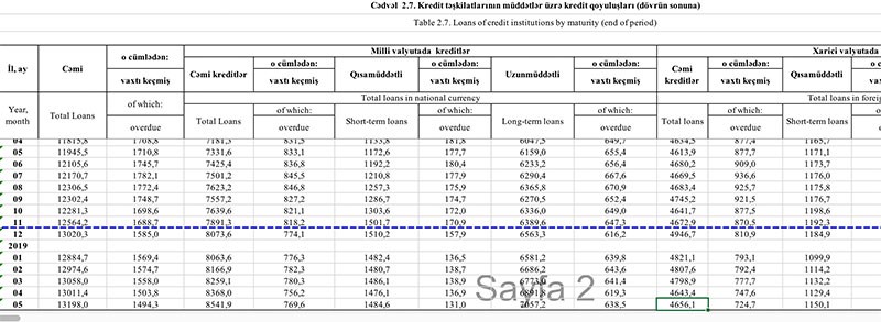 İlk 5 ay ərzində isə milli valyutada cəmi kreditlər 468,3 milyon manat artıb, xarici valyutada cəmi kreditlər isə 290,6 milyon manat azalıb.