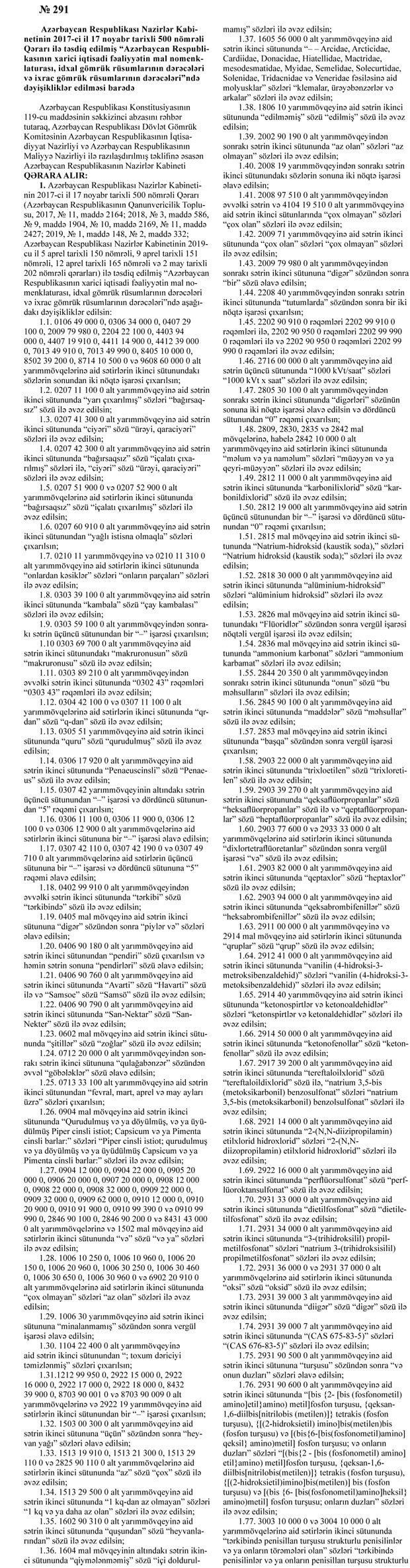 Qərara əsasən, malların xarici iqtisadi fəaliyyətin mal nomenklaturalarında, mal mövqelərinin adlarında və tariflərində dəyişikliklər edilib.