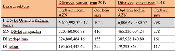 Dövlət istiqrazlarının təkrar bazarında isə dövriyyə 2,5 dəfə artıb. Ötən ilin birinci yarısında 79 milyon 293 min manat təşkil etmiş dövriyyə cari ilin eyni dövründə 195 milyon 654 min manata yüksəlib.