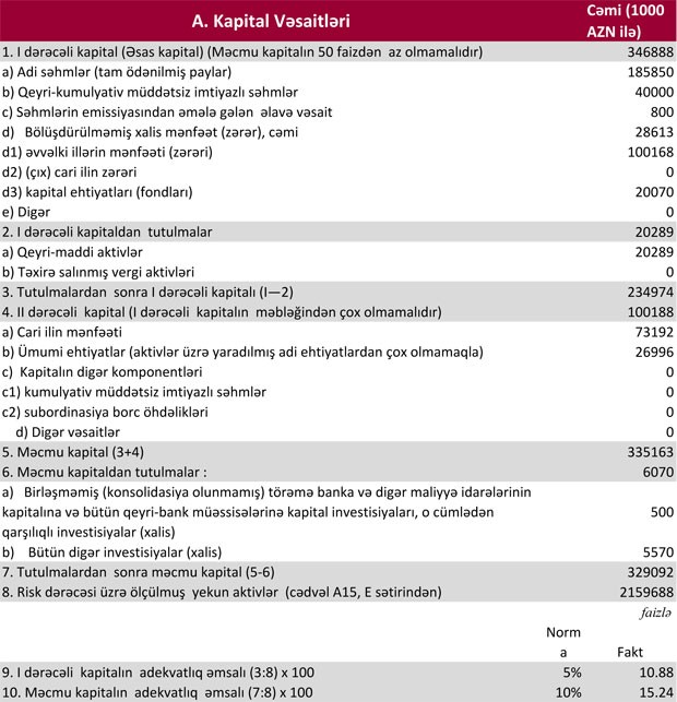 30 İyun 2019-cu il tarixində "Kapital Bank" 329 milyon 92 min manat məcmu kapitala malik olub.