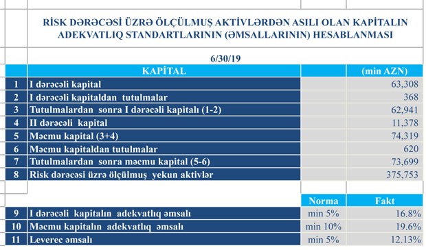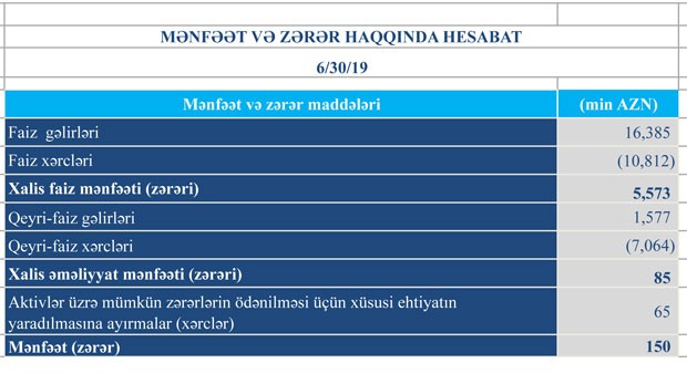 Daha bir bank yarımillik maliyyə vəziyyətini açıqladı