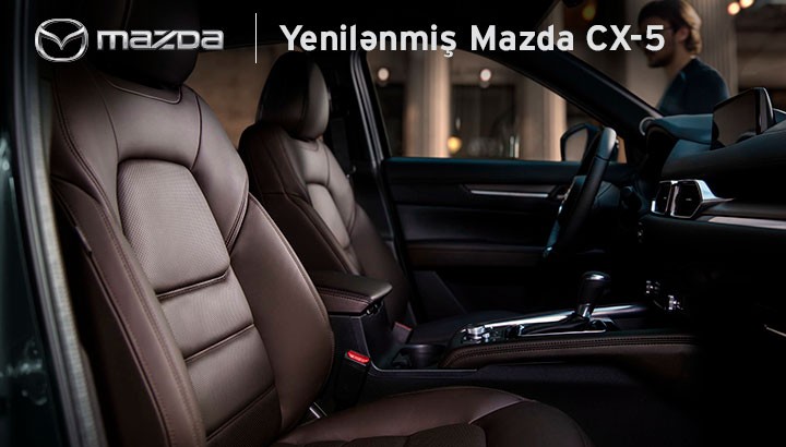 Dizaynında daima insan-avtomobil vəhdətini üstün tutan Mazda CX-5-in premium komplektasiyasındakı əlavələr bu vəhdəti daha da gücləndirməyə xidmət edir. İnteryerdə ilk nəzərə çarpan dəyişiklik ağac işləmələr və Nappa dəri örtük kimi lüks toxunuşlardır. Eyni zamanda içindən havalandırma funksiyası ilə oturacaqların komfortu artırılıb. Sürücünün ətrafında toplanmış bir sıra intellektual yeniliklər isə arxayın idarəetməni təmin edir. 8” displeylə yanaşı, mühüm məlumatları ön şüşədə əks etdirən Head-Up Display sayəsində sürücü gözünü yoldan ayırmadan hər şeyə nəzarət edə bilir. 3600 dairəvi görünüş kamerası isə innovativ təhlükəsizlik texnologiyalarını tamamlayan yenilikdir.
