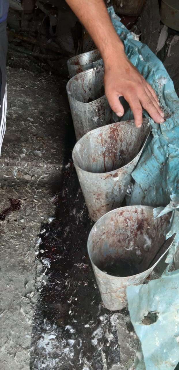 41 kq soyulmuş toyuq cəmdəyi aşkar olunan emal sahəsində toyuqların texniki-normativ tələblərə əməl edilmədən, kustar üsulla kəsildiyi, antisanitar şəraitdə tükdən təmizləndiyi, uzun müddət aliminium çanaqlarda baytarlıq-sanitariya və sanitariya-gigiyena normalarına cavab verməyən şəraitdə saxlanıldığı aşkarlanıb.