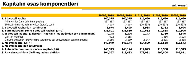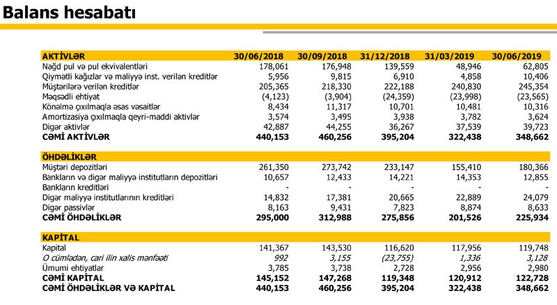 2018-ci ilin 1-ci yarısının yekunu ilə müqayisədə Bankın cəmi öhdəlikləri 23,4% azalaraq 225 milyon 934 min manata, cəmi kapitalı isə 15,4% azalaraq 122 milyon 728 min manata geriləyib. Kapitalın azalması ötən ilin zərəri ilə bağlıdır. "Expressbank" 2018-ci ili 23 milyon 755 min manat zərər ilə bağlamışdı.