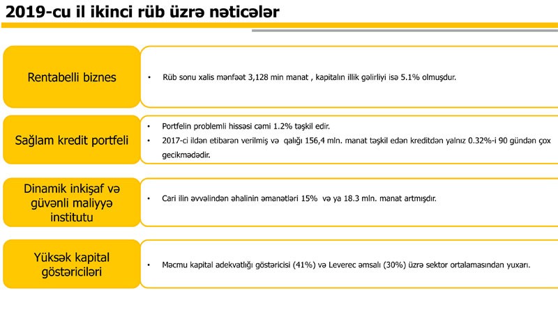 "Expressbank" ASC 2019-cu ilin 1-ci yarısını (yanvar-iyun dövrünü) 3 milyon 128 min manat mənfəət ilə başa vurub. Ötən ilin eyni dövrü ilə müqayisədə Bankın mənfəəti 3,1 dəfə artıb. "Expressbank" 2018-ci ilin 1-ci yarısını 992 min manat mənfəətlə bağlamışdı.