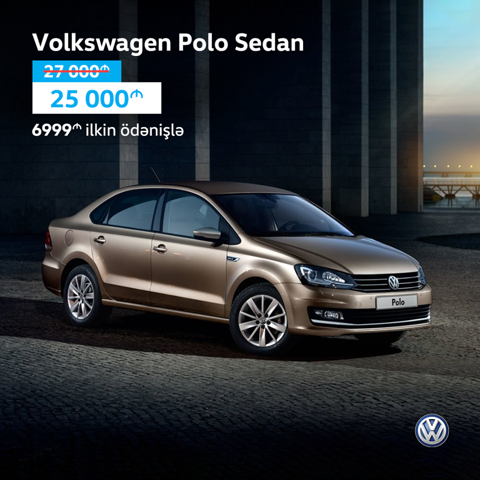 Məhdud sayda 2019-cu il istehsalı Polo Sedan Comfortline avtomobilini 27000 AZN-ə deyil, 25000 AZN-ə nəğd, 6999 AZN ilkin ödənişlə kreditlə əldə edə bilərsiniz. 36 ay müddətdə aylıq ödəniş 774 AZN edir. Müddəti 60 aya qədər uzada bilərsiniz.