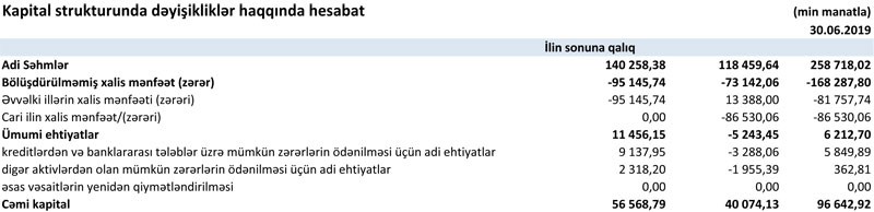 İyunun sonunda “AccessBank” 96 milyon 643 min manat cəmi balans kapitalına, 76 milyon 685 min manat məcmu kapitala malik olub. 2018-ci ilin sonunda Bank 56 milyon 569 min manat cəmi balans kapitalına və 30 milyon 28 min manat məcmu kapitala malik idi. Məcmu kapitalın artmasının səbəbi “AccessBank”a yeni səhmdarların cəlbilə nizamnamə kapitalının artırılmasıdır.