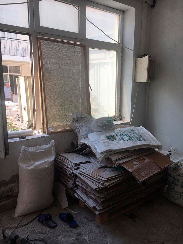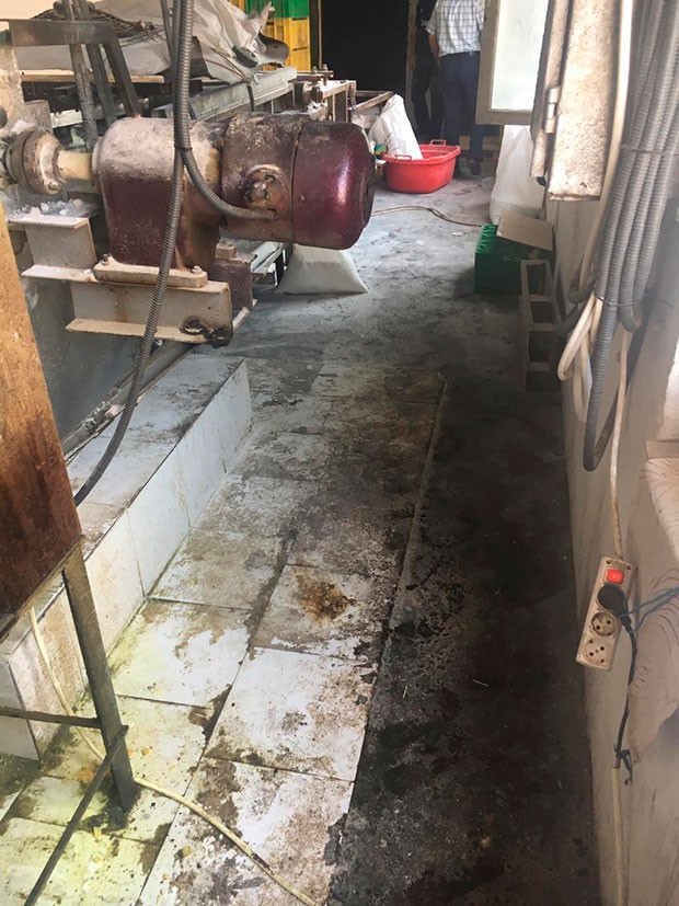 Müəssisənin yararsız vəziyyətdə olan döşəməsində su yığıldığı və bunun da patogen mikroorqanizmlərin inkişafına və bioloji çirklənməyə yol açdığı müşahidə olunub.