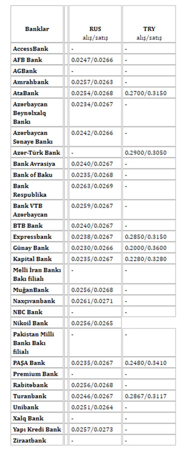 Yapı Kredi Bank Azərbaycan | 1.6985 | 1.7025 | 1.8540 | 1.9015 |