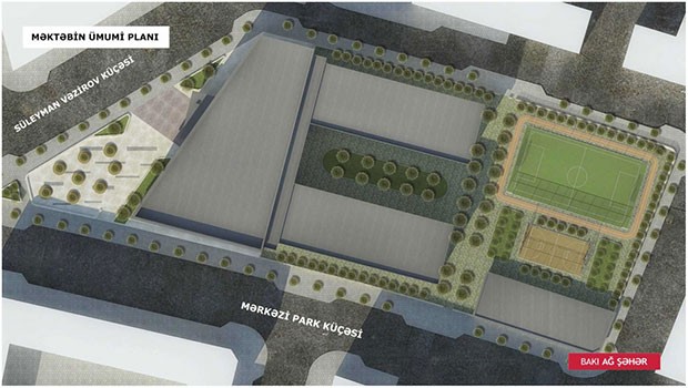 1,3 ha ərazidə tikiləcək məktəb binasının ümumi sahəsi 15 000 kv. metr təşkil edir. Müasir üslublu məktəb binasının qarşısında layihələndirilmiş xüsusi dizaynlı meydan məktəblilərin sevimli görüş məkanına çevrilməyi vəd edir. Məktəb sahəsində özəl landşaft, şagirdlər üçün futbol və basketbol meydançaları, eləcə də qaçış yolu layihələndirilib.