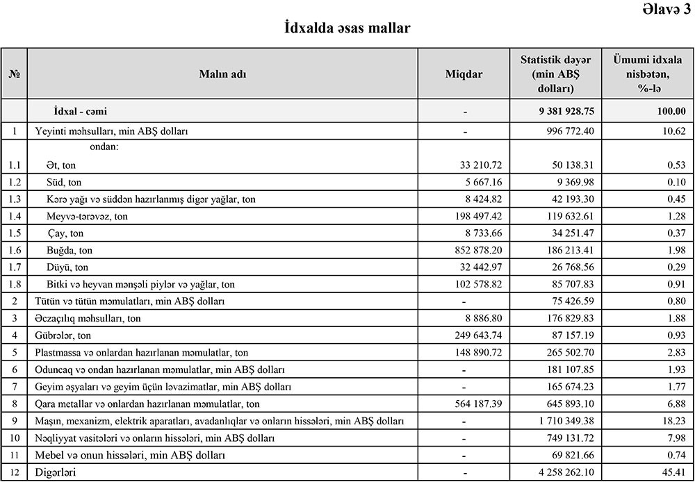 Azərbaycanın ən çox ixrac və idxal etdiyi mallar
