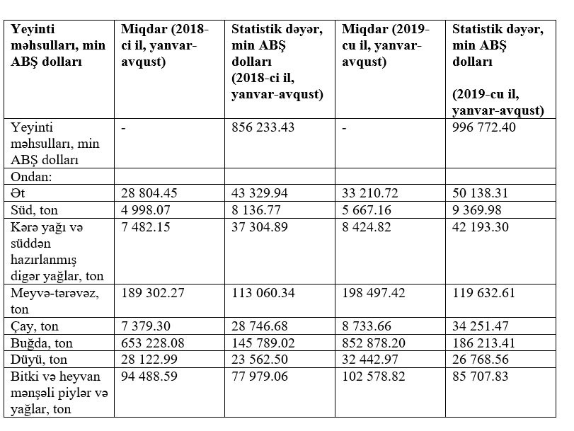 Azərbaycana yeyinti məhsullarının idxalı artır.