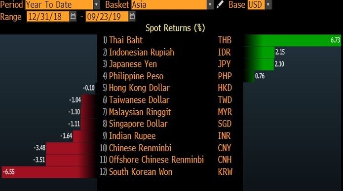 "Marja" xəbər verir ki, ABŞ ilə Çin arasında davam edən ticarət müharibələri ən çox Cənubi Koreya vonu və Çin yuanı kimi pul vahidlərini vurur. Tailand bahtı isə bu il 6%-dən çox dəyər qazanıb.