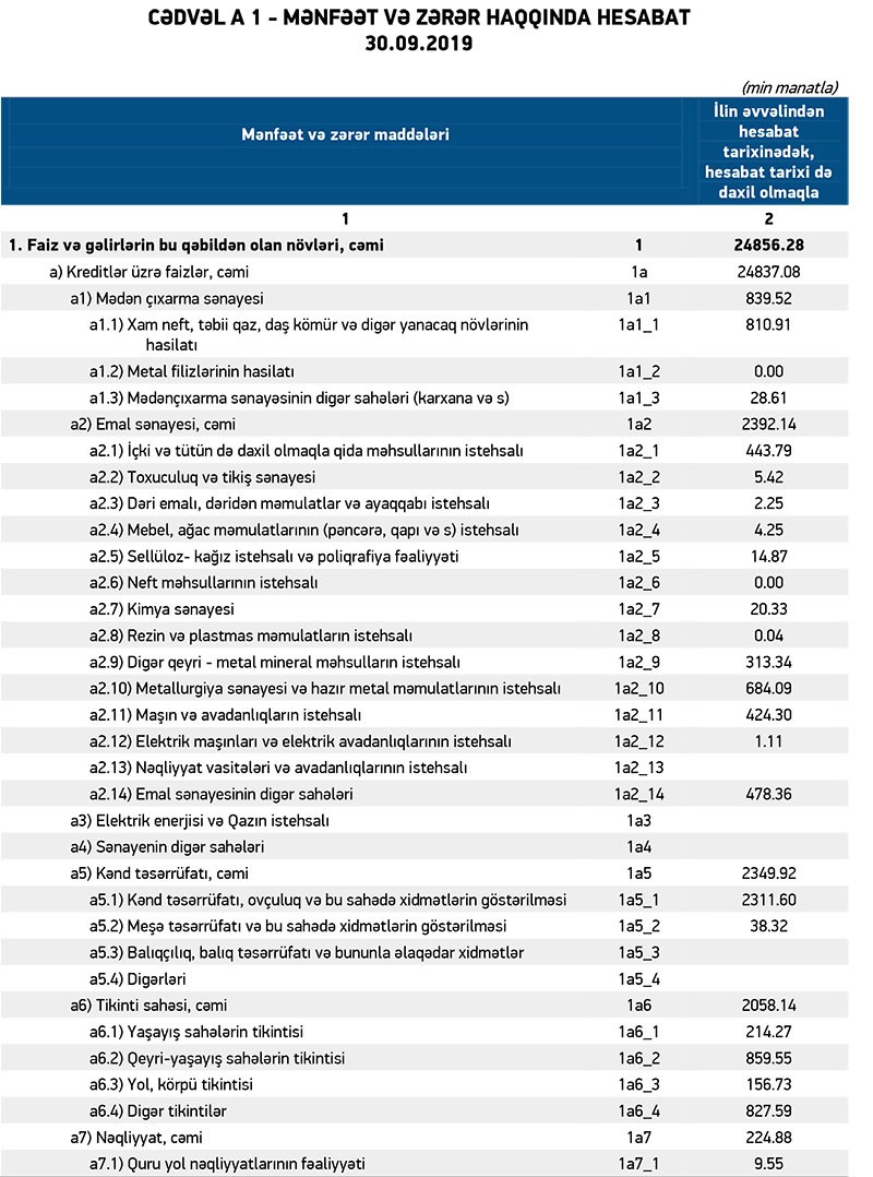 “AtaBank” ASC 2019-cu ilin 9 ayını cəmi 22 min manat xalis mənfəətlə başa vurub. Xalis mənfəət əvvəlki dövrlərdə ehtimal olunan kredit itkiləri üçün yaradılmış ehtiyatdan qaynaqlanır. Ehtiyatdan 4 milyon 991 min manatın azad olması həm əməliyyat zərərini bağlayıb, həm də cüzi xalis mənfəət qalıb.
