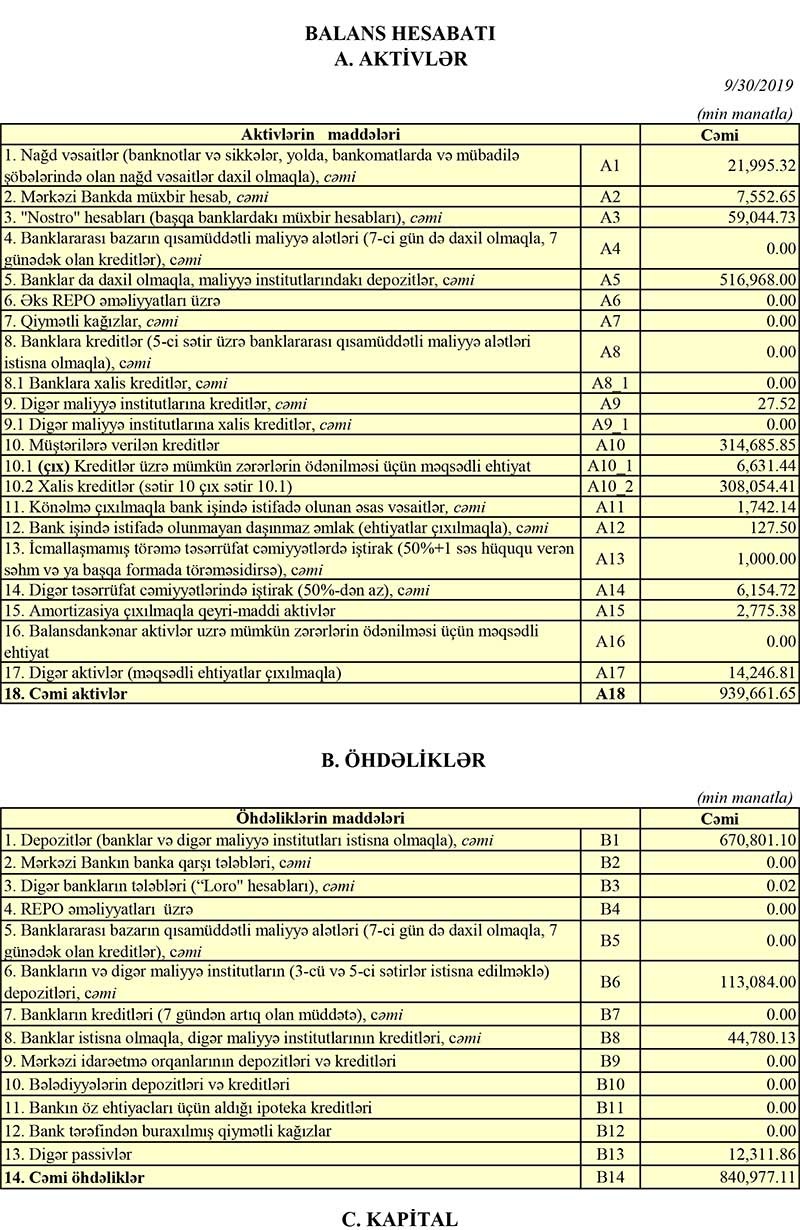 31 Sentyabr 2019-cu il tarixində “Azərbaycan Sənaye Bankı” 939 milyon 661 min manat cəmi aktivlərə, o cümlədən 314 milyon 685 min manat kredit portfelinə malik olub. Ötən ilin sonunda Bank 822 milyon 311 min manat cəmi aktivlərə, o cümlədən 285 milyon 949 min manat kredit portfelinə malik idi .