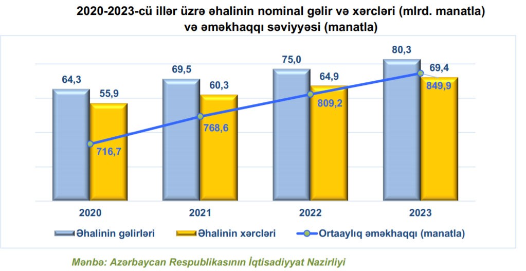 İnflyasiya səviyyəsinin tənzimlənməsi və məzənnə sabitliyinin qorunub saxlanılması ortamüddətli dövrdə əhalinin sosial rifah göstəricilərində müsbət təsir göstərəcəkdir. Proqnozlara əsasən növbəti il və sonrakı üç ildə əhalinin gəlirlərinin real ifadədə orta hesabla 8,3 faiz artaraq 2023-cü ildə 80,3 milyard manata, xərclərinin isə 7,9 faiz artaraq 69,4 milyard manata qədər yüksəlməsi proqnozlaşdırılır. Cari ildə əhalinin sosial rifahının yüksəldilməsi üçün həyata keçirilmiş tədbirlərin nəticəsində iqtisadiyyatın bütün sahələri üzrə ortaaylıq əməkhaqqı səviyyəsinin 2020-ci ildə 15,5 faiz artımı gözlənilir.