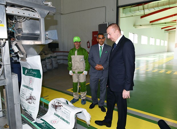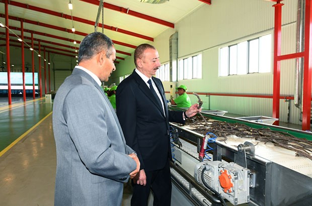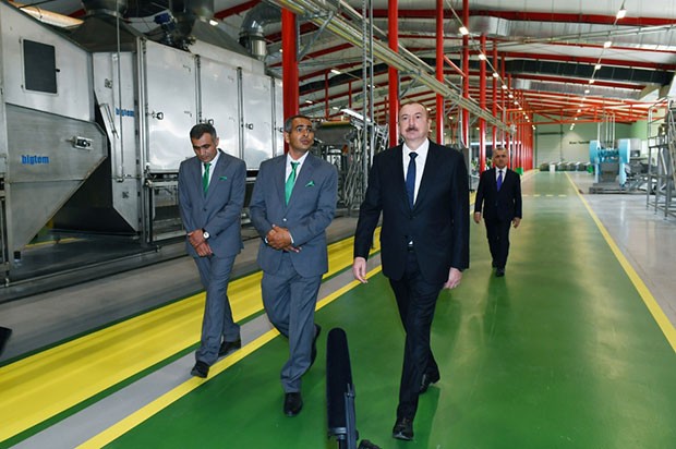 Dövlətimizin başçısı əvvəlcə biyan tədarükü və emal zavodunu işə salıb.