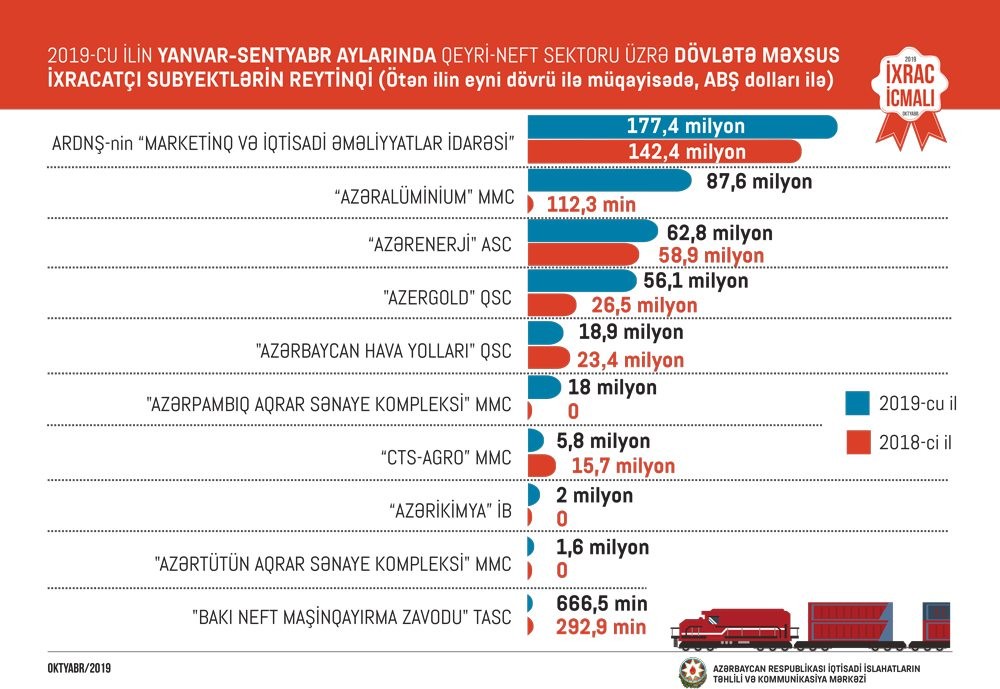 Azərbaycan Respublikası İqtisadi İslahatların Təhlili və Kommunikasiya Mərkəzinin “İxrac İcmalı”nın 2019-ci ilin oktyabr sayı təqdim olunub.