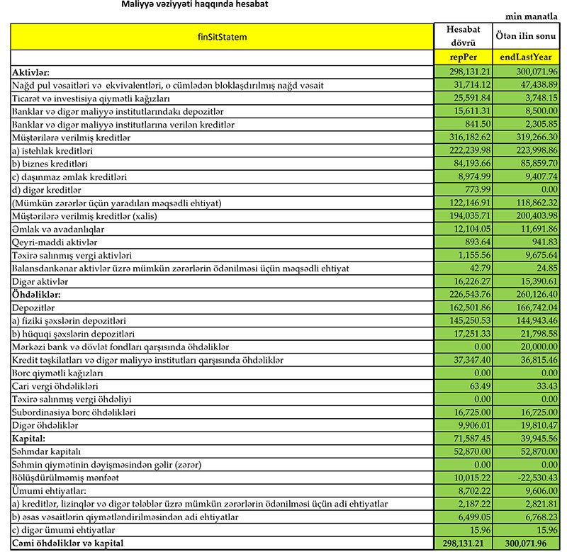 Müqayisə üçün qeyd edək ki, 2018-ci ilin 9 ayında “Bank of Baku”nun cəmi gəlirləri 33 milyon 539 min manat, cəmi xərcləri 57 milyon 159 min manat, əməliyyat zərəri 23 milyon 620 min manat təşkil etmişdi. Ehtiyatın 26 milyon 748 milyon manatının azad olması hesabına zərər bağlanmışdı və bankın 3 milyon 128 min manat xalis mənfəəti yaranmışdı.