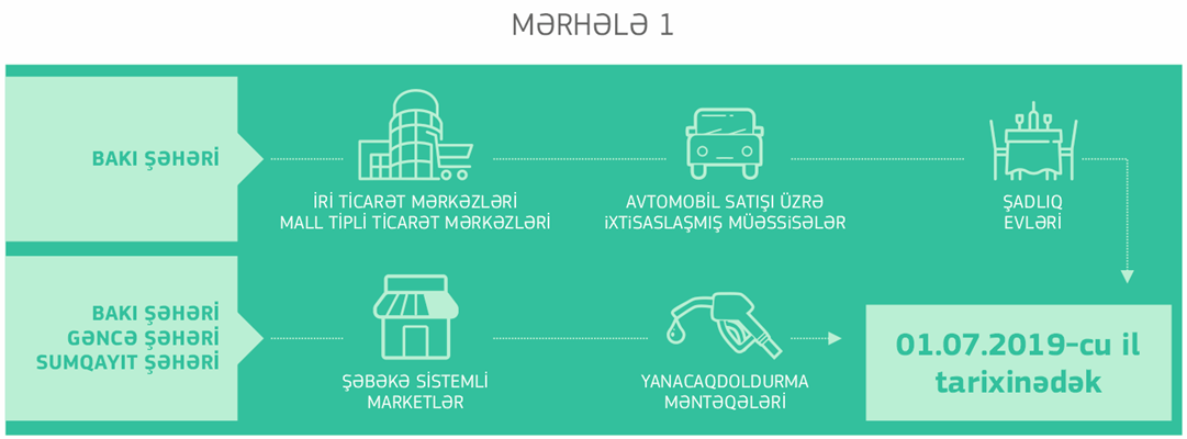 Oktyabr ayının əvvəlinədək ölkədəki iri ticarət mərkəzləri, şadlıq evləri, şəbəkə marketlər, yanacaqdoldurma məntəqələri avtomobil və mebel satışı mərkəzləri e-kassa sisteminə keçməlidilər. Azərbaycanda bu kimi obyektlərin sayının on minlərlə olduğunu nəzərə alsaq POS-terminalların sayının 1381 ədəd artması zəif artımdır.