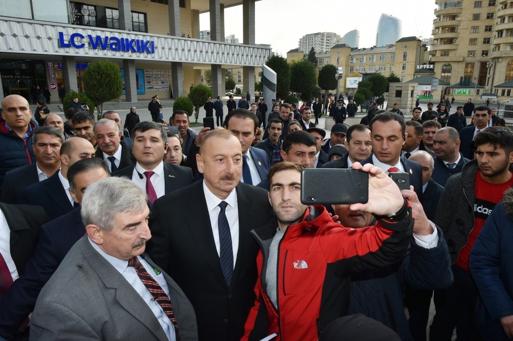Sonra dövlətimizin başçısı metronun “28 May” stansiyasının qarşısında vətəndaşlarla görüşdü, onlarla söhbət etdi.
