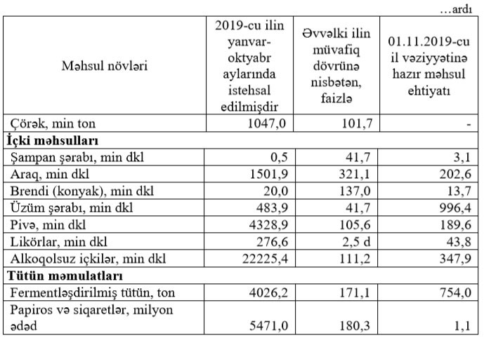 “Marja” Dövlət Statistika Komitəsinin aylıq hesabatına istinadən xəbər verir ki, 2019-cu ilin yanvar - oktyabr aylarında əvvəlki ilin yanvar-oktyabr ayları ilə müqayisədə tütün məmulatlarının istehsalında 67,6 faiz, içki istehsalında 39,5 faiz, qida məhsullarının istehsalında isə 13,9 faiz artım müşahidə olunmuşdur.