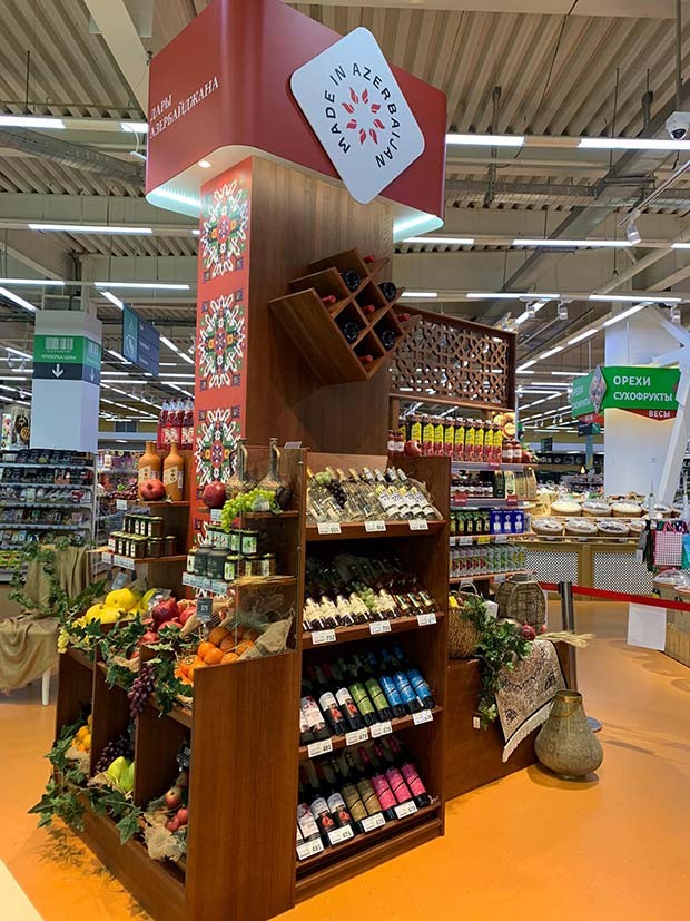 Azərbaycanın Rusiyadakı ticarət nümayəndəliyinin dəstəyi ilə Moskvanın Kuntsevo rayonundakı “Veqas” ticarət-əyləncə mərkəzindəki “Tvoy dom” hipermarketində geniş çeşiddə “Made in Azerbaijan” brendli məhsulların təqdim olunduğu “Azərbaycan nemətləri” guşəsi açılıb.