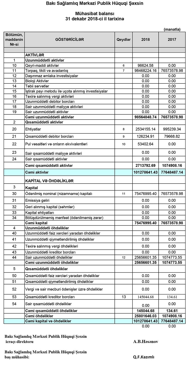 2017-ci illə müqayisədə 2018-ci ildə Bakı Sağlamlıq Mərkəzinin cəmi öhdəlikləri 24 dəfə artaraq 25 milyon 802 min manata yüksəlib.